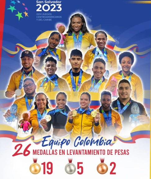 La delegación de Colombia en el levantamiento de pesas de los Juegos Centroamericanos y del Caribe San Salvador 2023, arrasó luego de obtener 19 medallas de oro, 5 de plata y 2 de bronce. Segundo fue Venezuela con una suma de 7-10-6 y luego República Dominciana con 3-3-10.