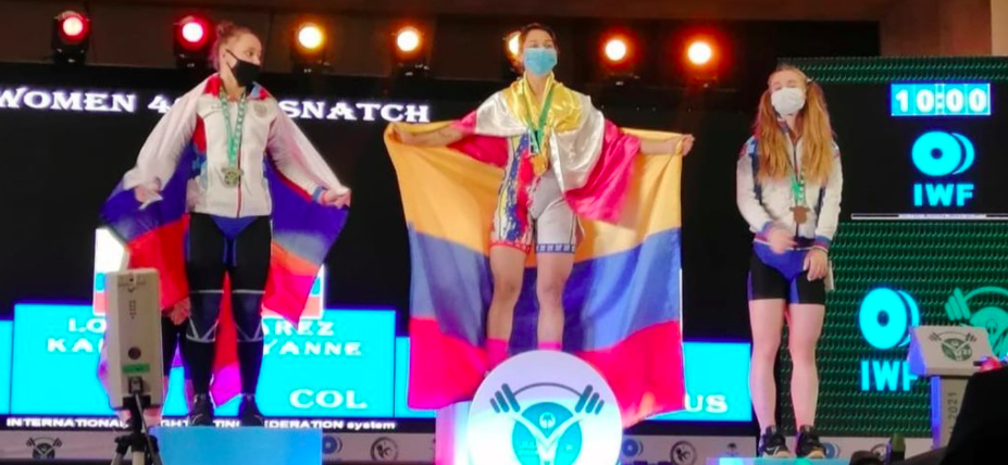 La colombiana Karol López conquistó este jueves tres medallas, una de oro y dos de bronce, en la división de los 49 kilogramos femenino del Campeonato Mundial Junior de Levantamiento de Pesas en Arabia Saudita.